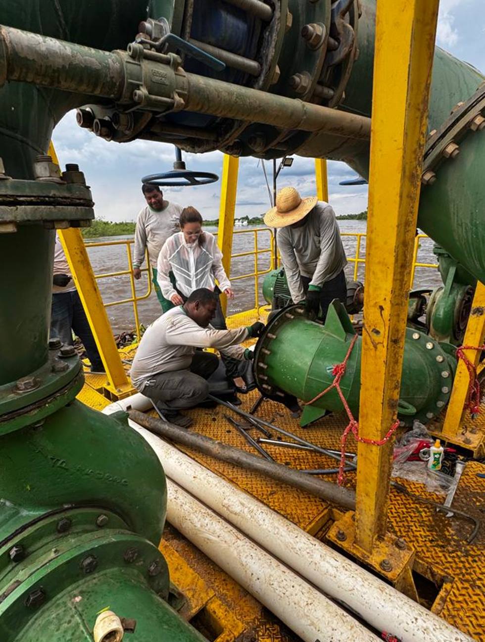 Superação de Desafios Técnicos - O sistema de captação de água bruta enfrentou um cenário crítico desde a noite de sexta-feira, devido às chuvas torrenciais e ao aumento do nível do Rio Paraguai. O ápice do incidente ocorreu na madrugada desta segunda-feira, quando um tronco de árvore de grandes proporções atingiu uma das bombas de sucção, provocando danos mecânicos e a paralisação total do sistema.